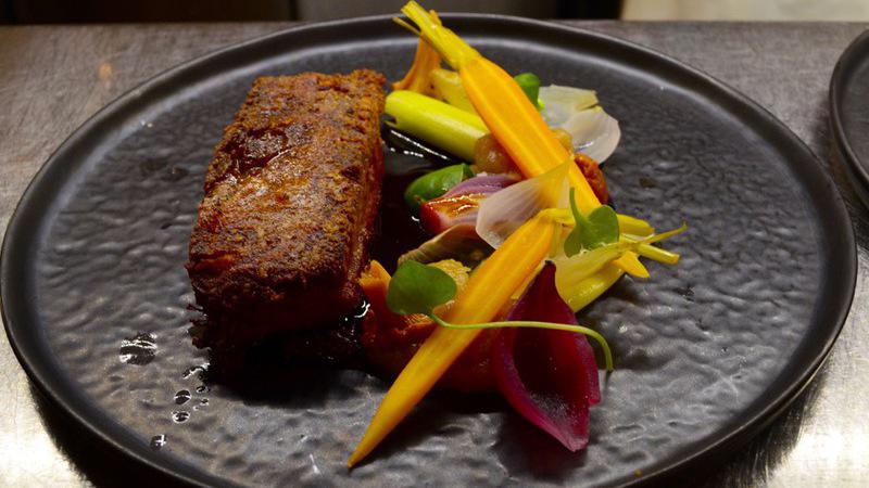 krokant gebakken, bospeen, cantharellen, prei, saus van pastinaak €21