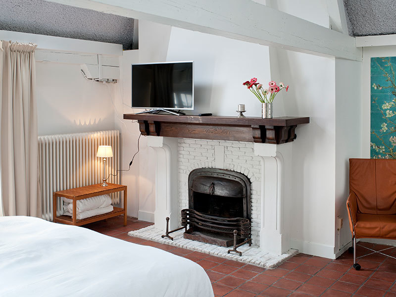 Wij verwelkomen u graag in onze patio kamer met de mooie originele balken en authentieke uitstraling van ons klassieke pand.